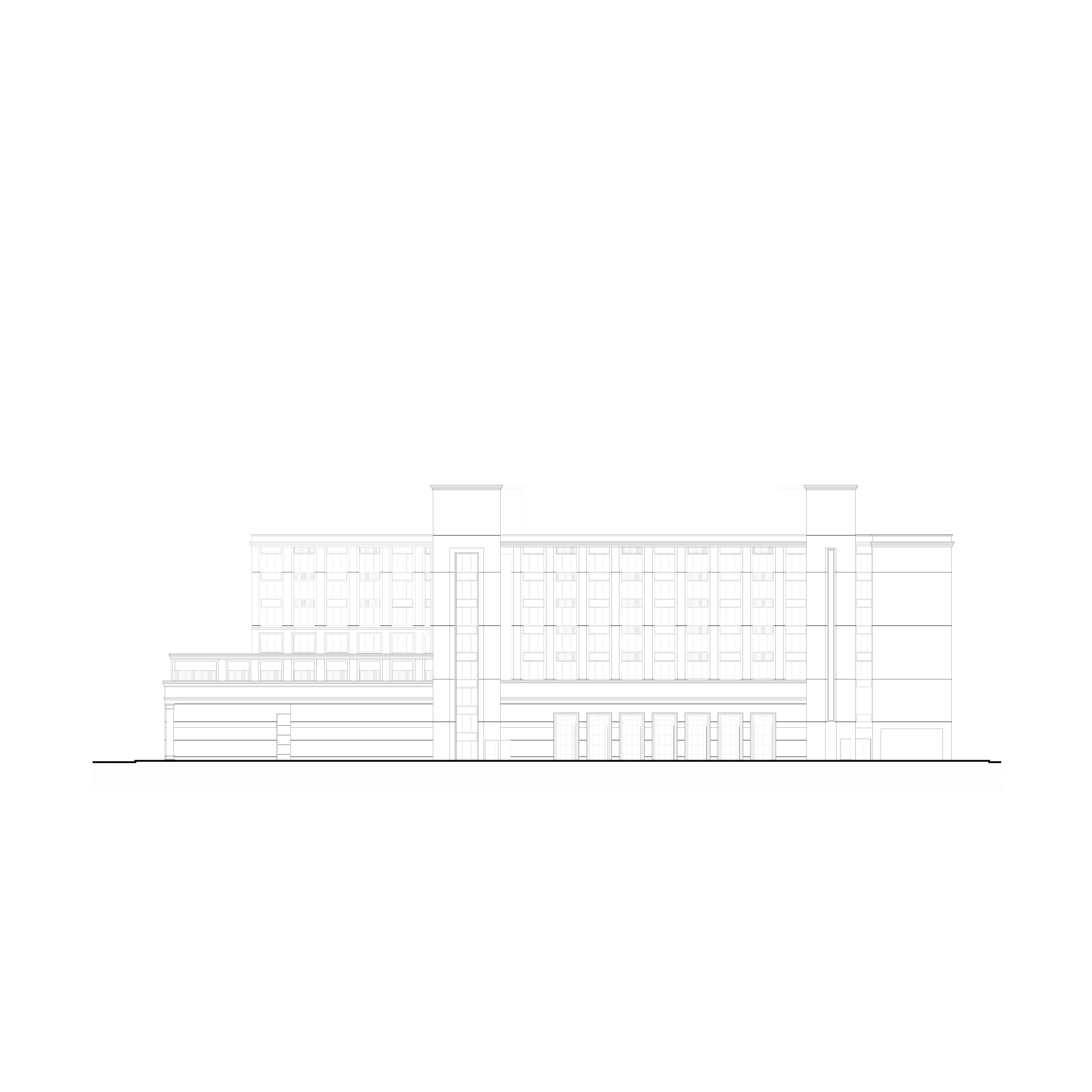 Inspired by classical architectural elements, the simple façades make use of stylized ornamental moldings to add a classic timeless quality to the spaces. The large landscaped pool deck at the second level adds more grounds for the rooms to overlook upon in the compact hotel. The terrace on one of the wings is another of its greens, housing a terrace bar and grill and party areas and enjoying spectacular views of the airport runway.