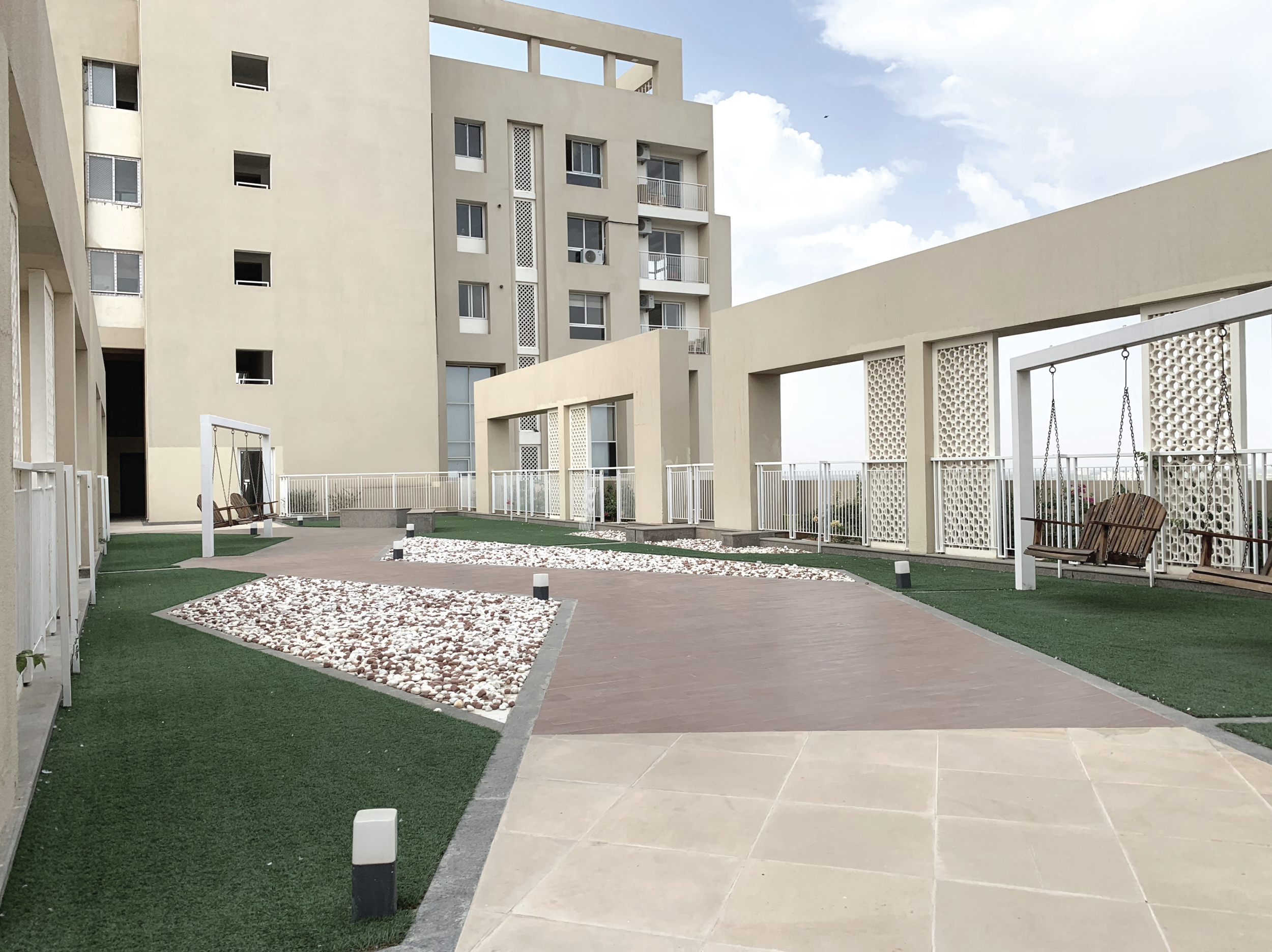 Mahima Elanza set out to redefine existing practices and notions of residential apartment design in the city. The core design principle of houses placed around courtyard spaces in vertical towers of stepping form gives the development its unique character. This is also accentuated by large multi-leveled voids in the towers that open up sky views at the lower levels and interconnect the gardens. The gardens on the ground seamlessly integrate with those on the podium allowing residents to access the parking areas, gardens, and club spaces on both levels to various lobbies and upwards to the sky-walk on the 14th level. The gardens continue at the sky walk which connects various tower lobbies and the recreational activities of the Club at that level. It offers its residents a sunny walking and basking areas especially suited for the cold winters in Jaipur.