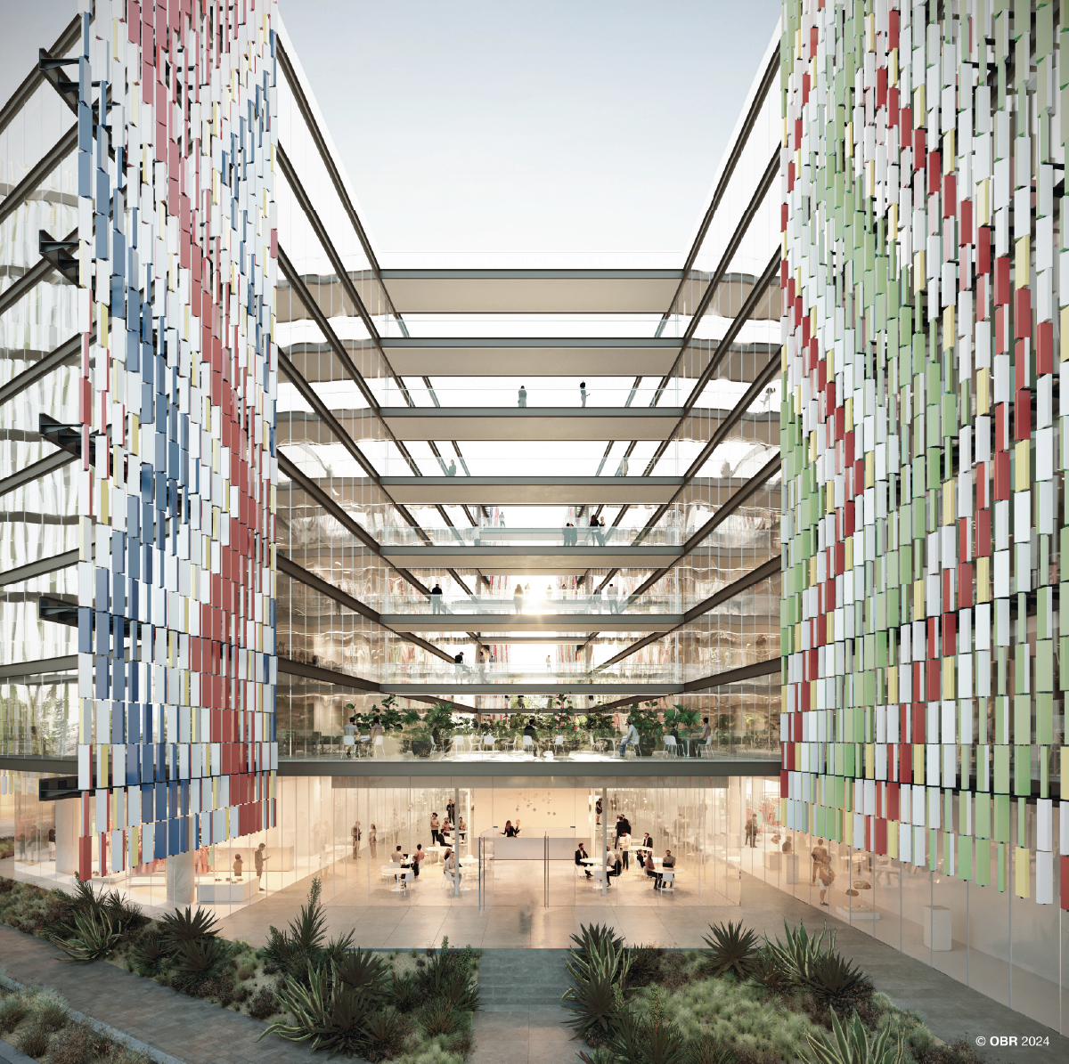 Leharia is a collaborative project with the Italian firm OBR leading the concept design. It promises a visually striking and sustainable building with glass and metal screen façade patterned in the traditional colorful tye and dye pattern called Lehariya, meaning waves or wavy.